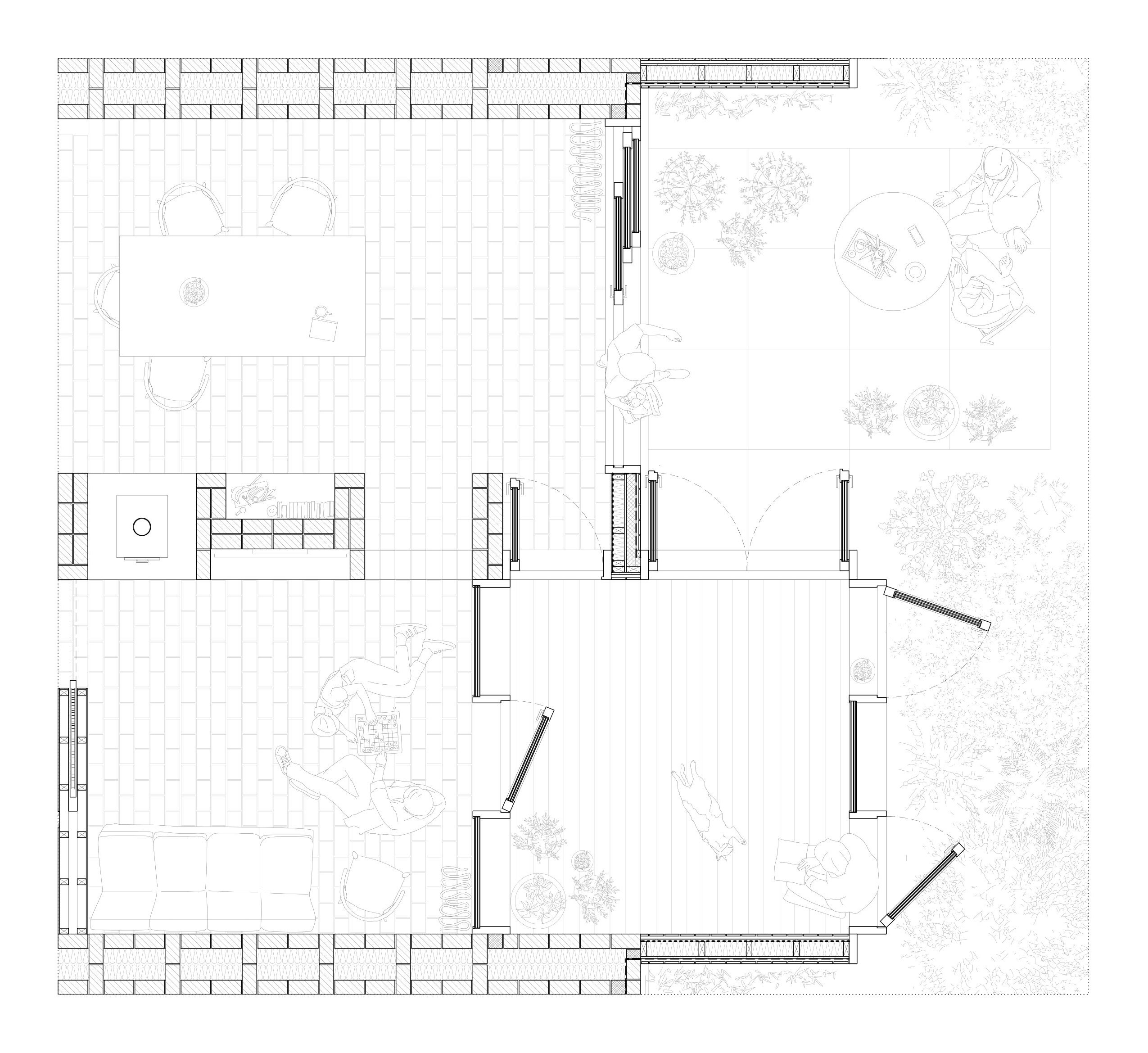 For this project we were asked to design a tectonic system with a carefully developed structure and envelope for a low energy house that embraces Stockholm’s climate, taking into account the environmental performance and thermal comfort of the building. In our scheme an emphasis was placed on the hierarchy of spaces, with a gradation of openness. Spaces for retreat are placed to the north, protected by a thick wall with significant insulation. To the south rooms open up: expansive glazing providing solar gain from the low winter sun and openings allowing passive ventilation during the warmer months. Brick diaphragm party walls and a central hearth add valuable thermal mass and a winter garden acts as a thermal buffer, forming another ‘layer’ of thermal comfort.